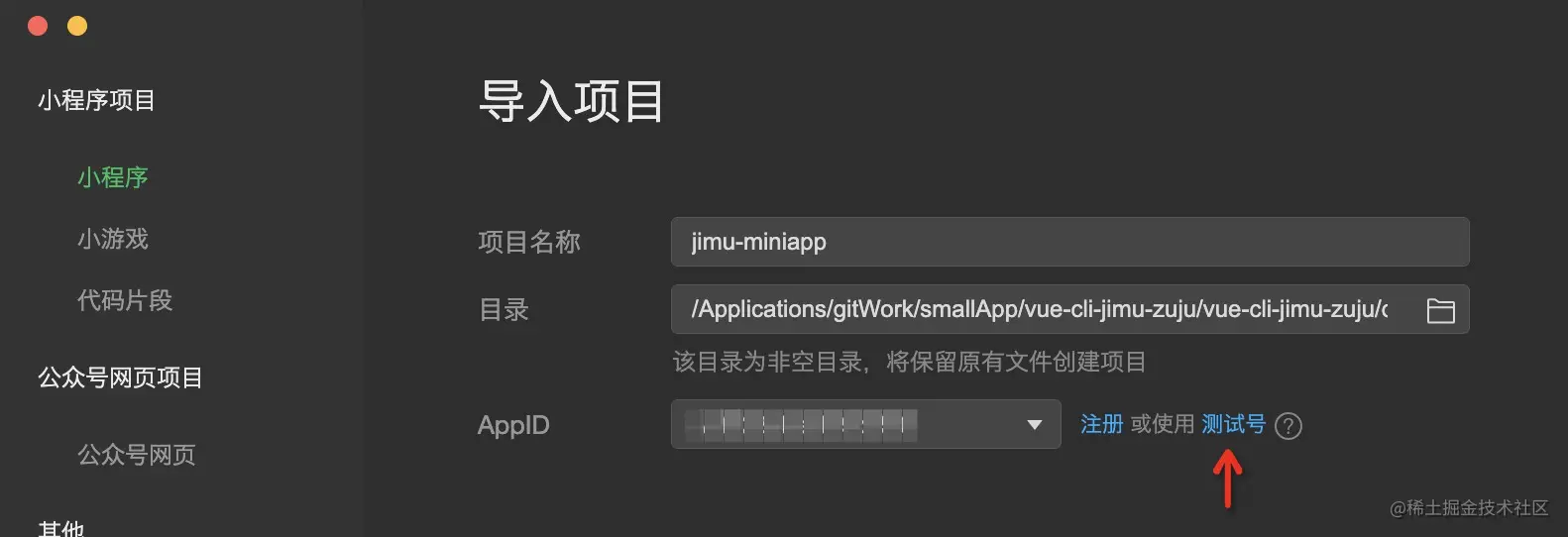 打开微信开发者工具,引入这个编译后的文件位置