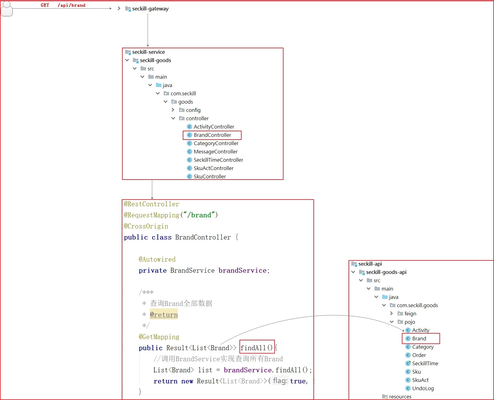 ②seckill-service/seckill-goods/BrandController.findAll()