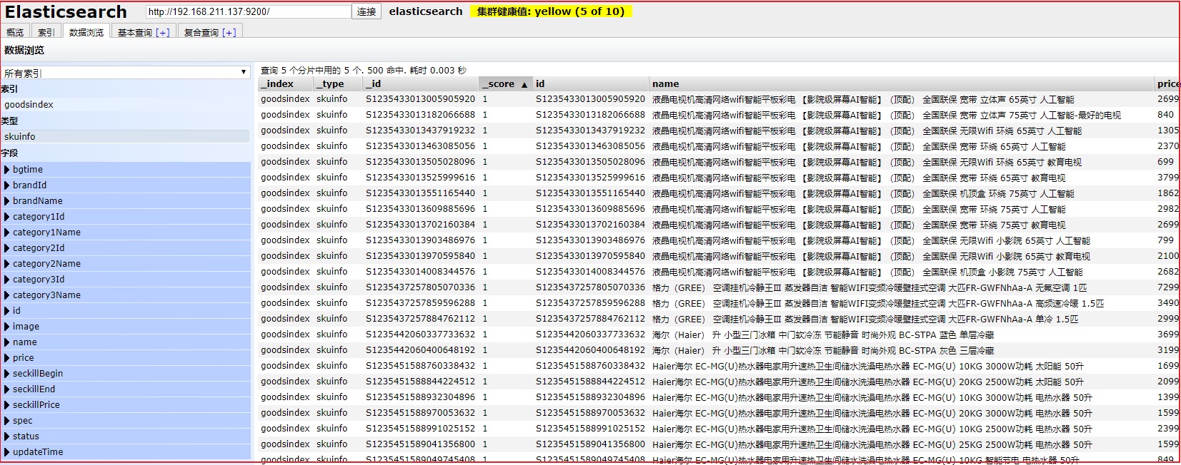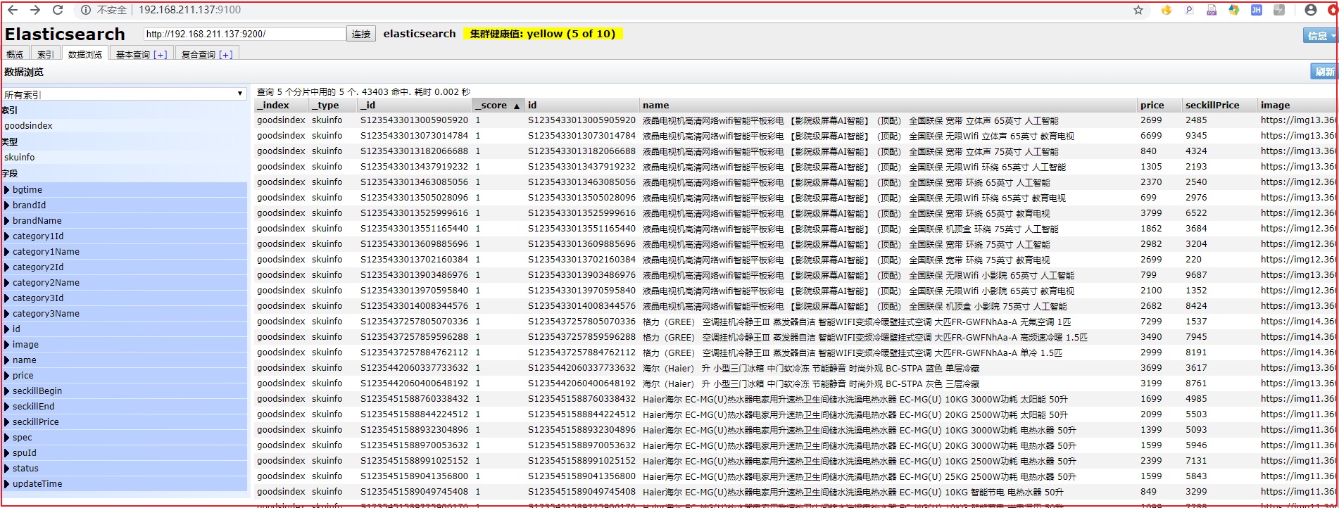 根据秒杀页面的需求,多数是查询指定秒杀时段下的秒杀商品,同时还会有分页,当然,如果有复杂的查询,我们Elasticsearch也都满足。我们可以根据多数秒杀需求,实现按照秒杀时段分页查询数据。