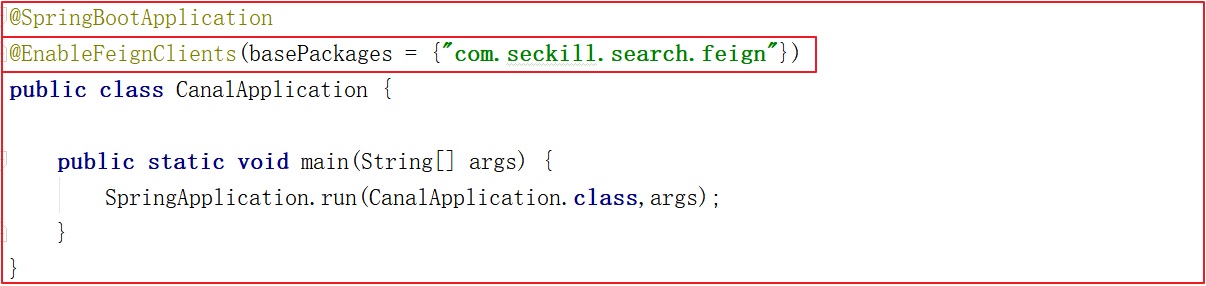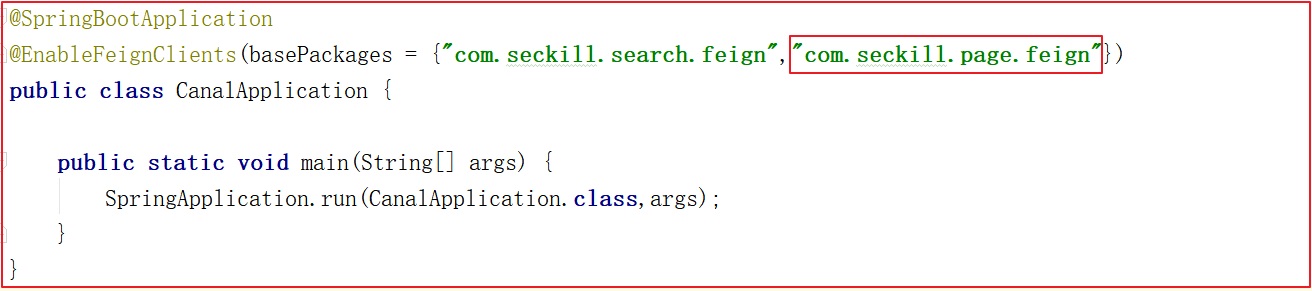 @EnableFeignClients(basePackages={"com.seckill.search.feign","com.seckill.page.feign"})