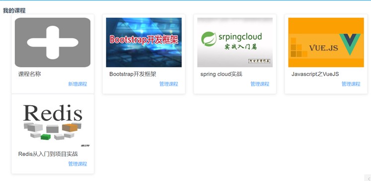课程添加成功进入课程管理页面,通过课程管理页面修改课程的基本信息、编辑课程图片、编辑课程营销信息等。 本小节实现修改课程。