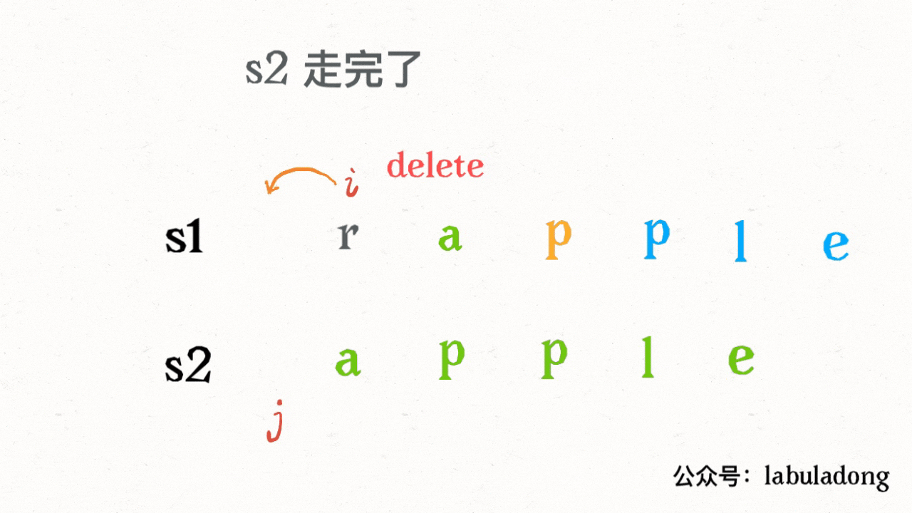 # 那么 s2[j] 就被匹配了,前移 j,继续跟 i 对比