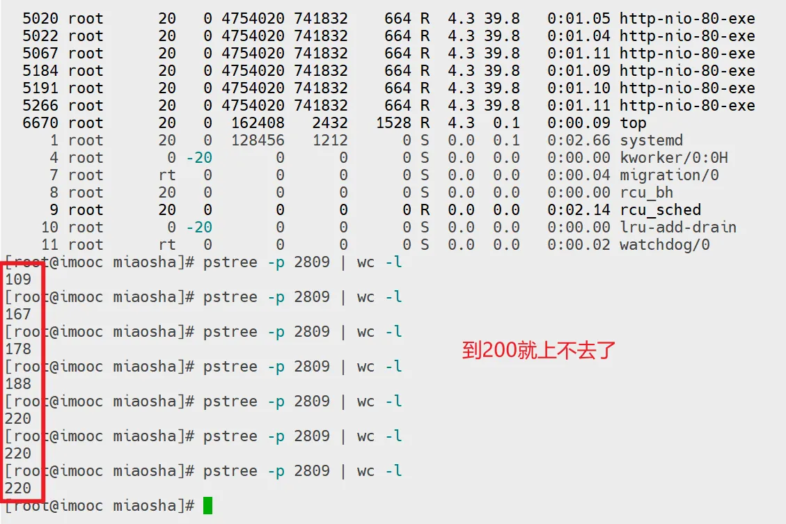 820-20=800` 正好是我们配置文件所配置的数据。。。这多出来的20其实不一定是Jmeter发起的进程。。。