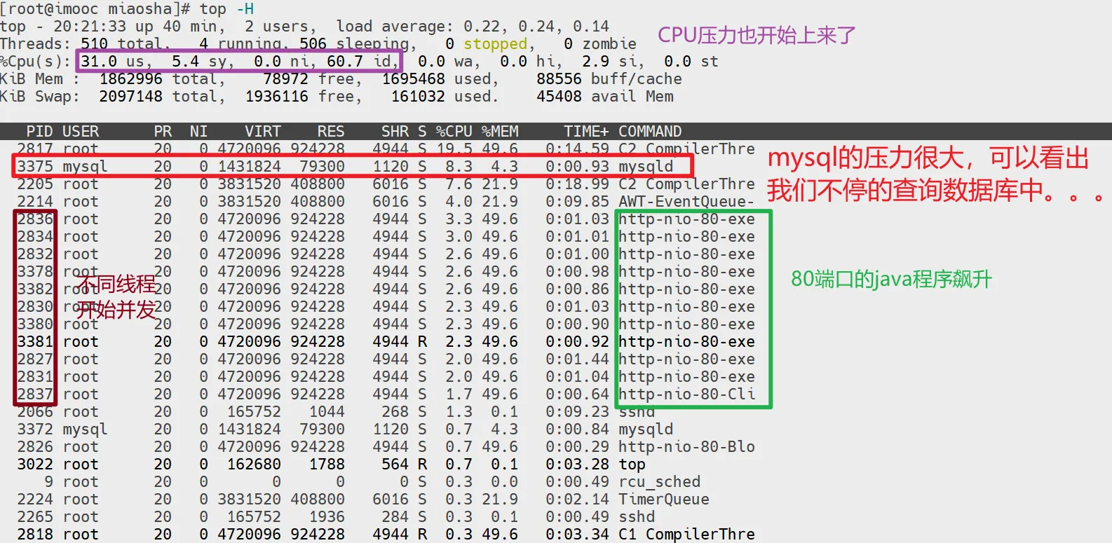 0.0% st:虚拟机占用百分比说明: 这里面的各种参数可以为我们检测压力提供重要数据支撑!运维。。。
