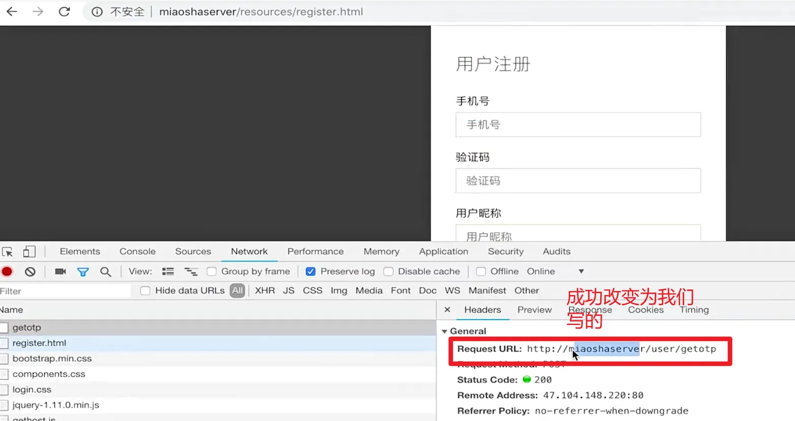 我们客户端发起的请求是miaoshaserver,反代后还是从header获得这个域名,暂时这么理解吧。。。