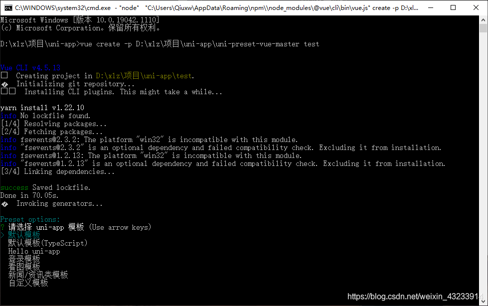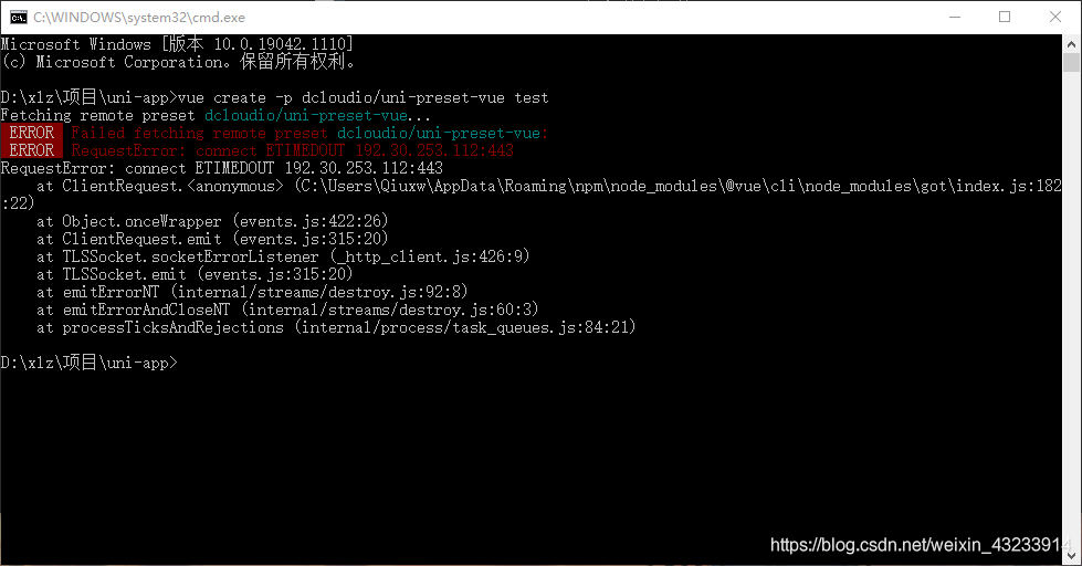 ERROR Failed fetching remote preset dcloudio/uni-preset-vue: