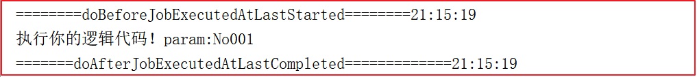 System.out.println("========doBeforeJobExecutedAtLastStarted========"+ TimeUtil.date2FormatHHmmss(new Date()));
