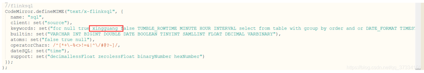 mode: mime, //指向引入的model/sql.js里面的'text/x-flinksql'【defineMime】