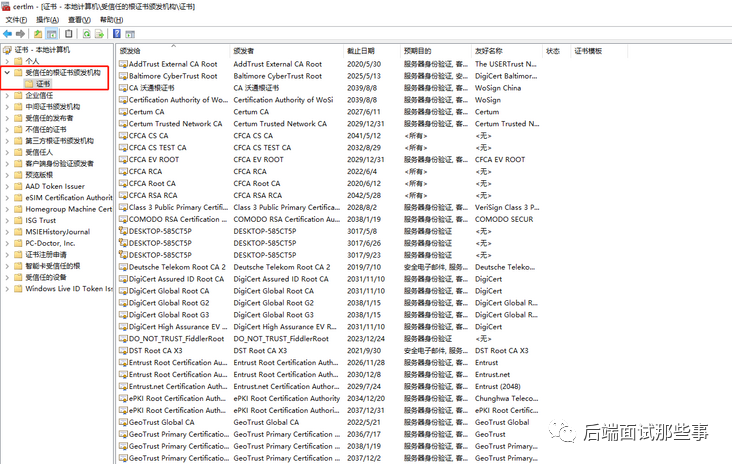 在 CA 认证体系中,所有的证书都是由权威机构来颁发,而权威机构的 CA 证书都是已经在操作系统中内置的,我们把这些证书称之为CA根证书: