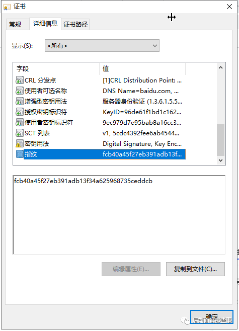 那么客户端 (浏览器) 又是如何对服务器证书做校验的呢,首先会通过层级关系找到上级证书,通过上级证书里的公钥来对服务器的证书指纹进行解密得到签名(sign1),再通过签名算法算出服务器证书的签名(sign2),通过对比sign1和sign2,如果相等就说明证书是没有被篡改也不是伪造的。