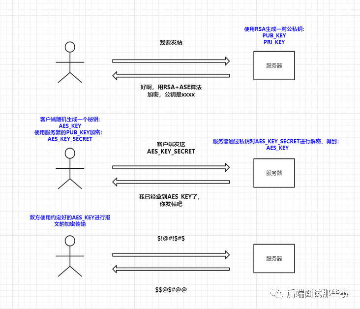 那么对于这种情况,我们肯定就会考虑能不能将秘钥进行加密不让中间人看到呢?答案是有的,采用非对称加密,我们可以通过 RSA 算法来实现。最近整理了一份最新的面试资料,里面收录了 2021 年各个大厂的面试题,打算跳槽的小伙伴不要错过,点击领取吧!