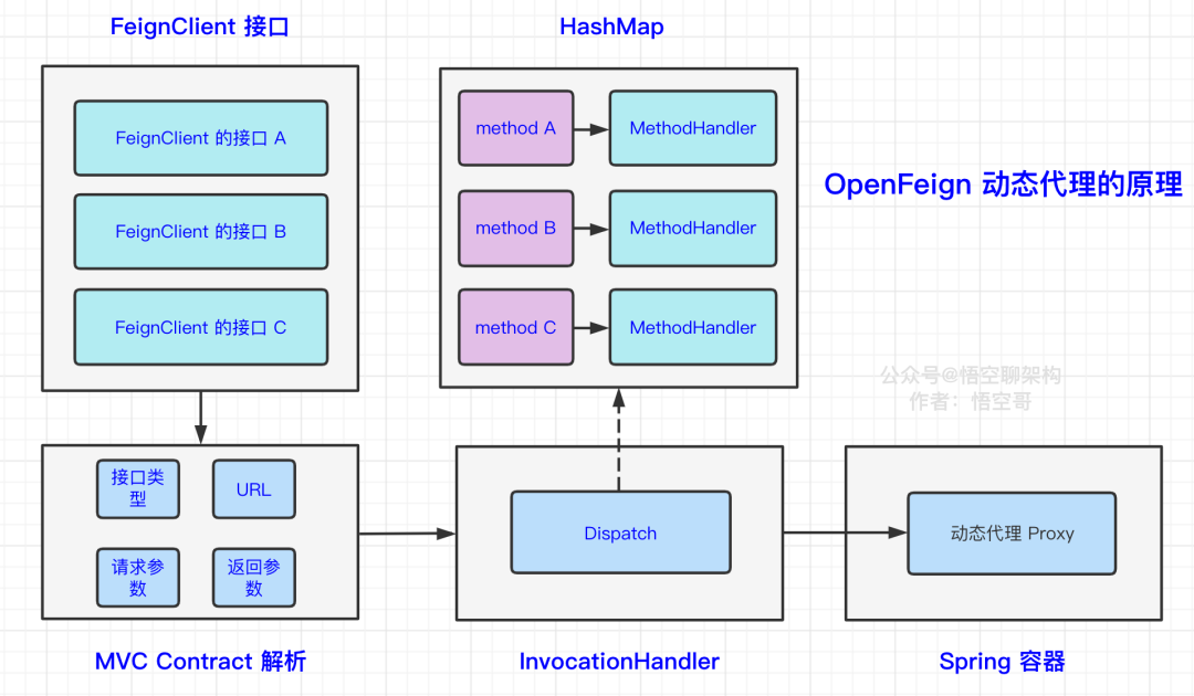 OpenFeign 使用起来倒是简单,但是里面的原理可没有那么简单,OpenFeign 帮我们做了很多事情,接下来我们来看下 OpenFeign 的架构原理。