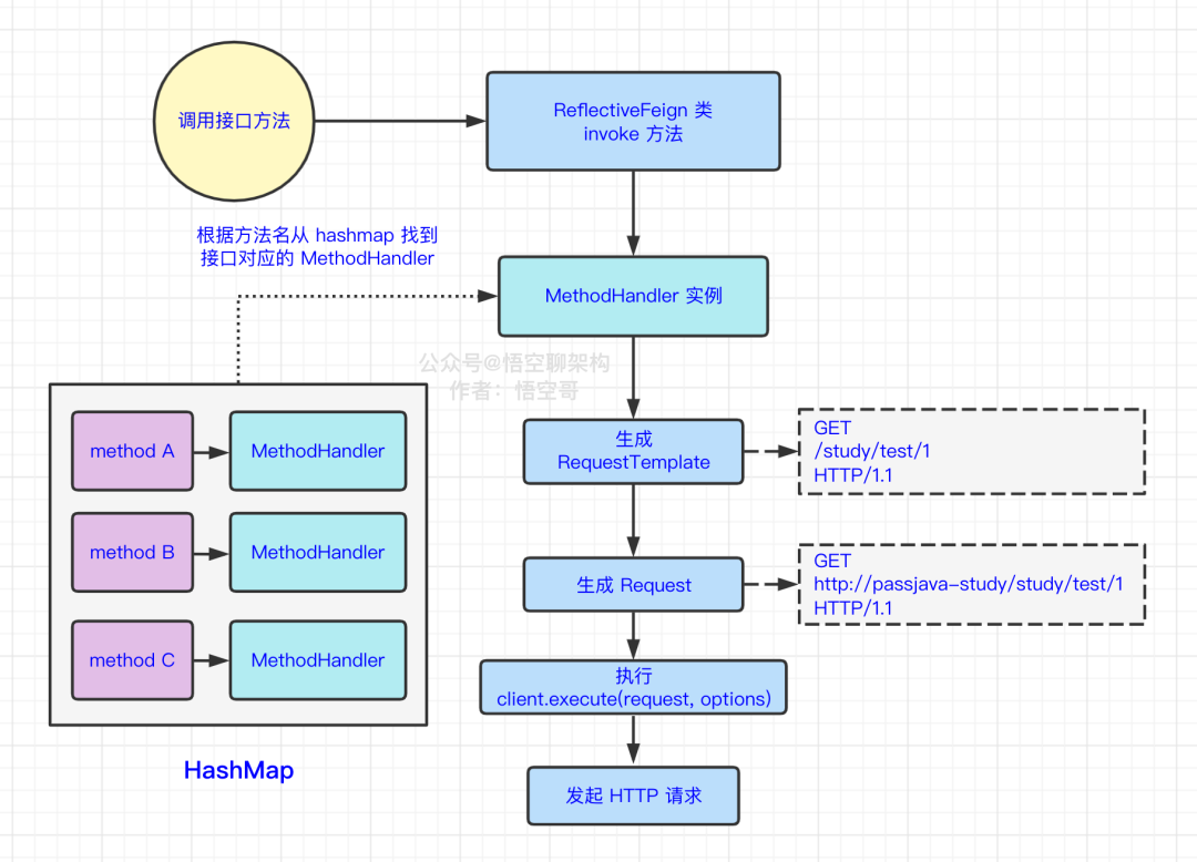 上面我们针对 OpenFeign 框架如何为 FeignClient 接口生成动态代理已经讲完了,下面我们再来看下当我们调用接口方法时,动态代理对象是如何发送远程调用请求的。
