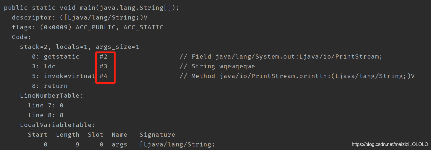 }使用javap -v反编译一下:
