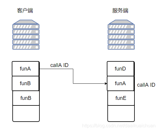 【Note】当客户端需要进行远程调用时,它就查一下这个表,找出相应的 Call ID,然后把它传给服务端,服务端也通过查表,来确定客户端需要调用的函数,然后执行相应函数的代码。
