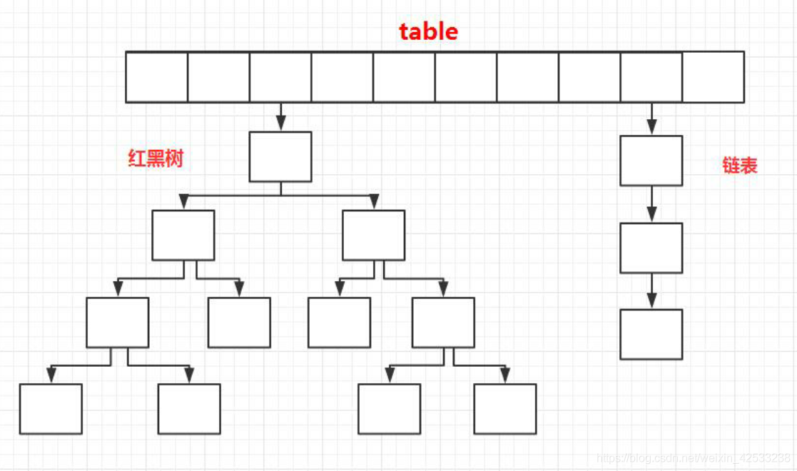 - 底层数据结构: JDK1.7 的 ConcurrentHashMap 底层采用 分段的数组 + 链表 实现,JDK1.8 采用的数据结构跟 HashMap1.8 的结构一样,数组 + 链表 / 红黑二叉树。Hashtable 和 JDK1.8 之前的 HashMap 的底层数据结构类似都是采用 数组 + 链表 的形式,数组是 HashMap 的主体,链表则是主要为了解决哈希冲突而存在的;