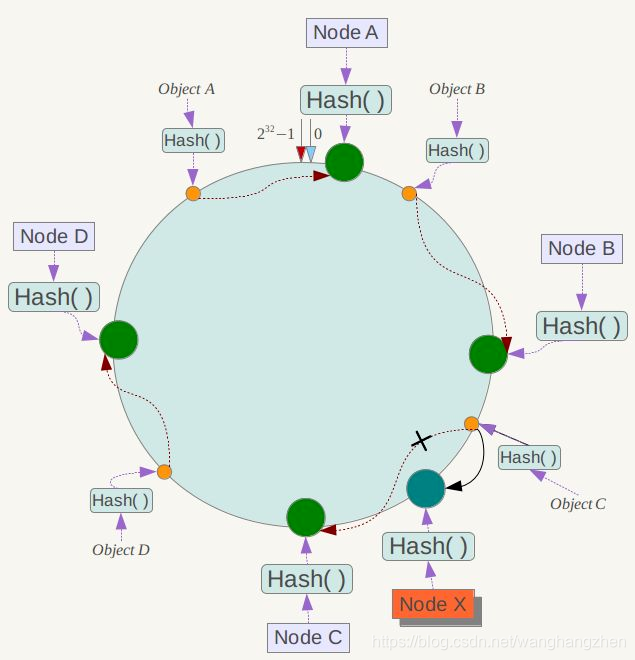 一致性哈希 可以很好的解决 稳定性问题,可以将所有的 存储节点 排列在 首尾相接 的 Hash 环上,每个 key 在计算 Hash 后会 顺时针 找到 临接 的 存储节点 存放。而当有节点 加入 或 退出 时,仅影响该节点在 Hash 环上顺时针相邻的后续节点。