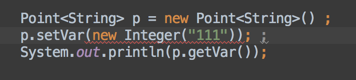 可以看到,当我们构造时使用的是 String, 而在 setVar 时,传进去 Integer 类型时,就会报错。而不是像 Object 实现方式一样,在运行时才会报强制转换错误。