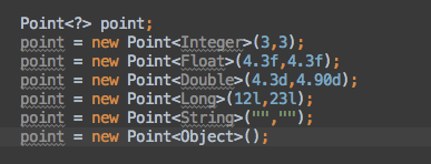 Point<?> point1 = new Point(new Integer(23),new Integer(23));