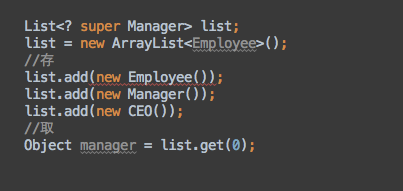 list.add(new CEO());因为 list 里 item 的类型是 <? super Manager>, 即 Manager 的任意父类,我们假如是 Employee,那下面这段代码大家能理解了吧: