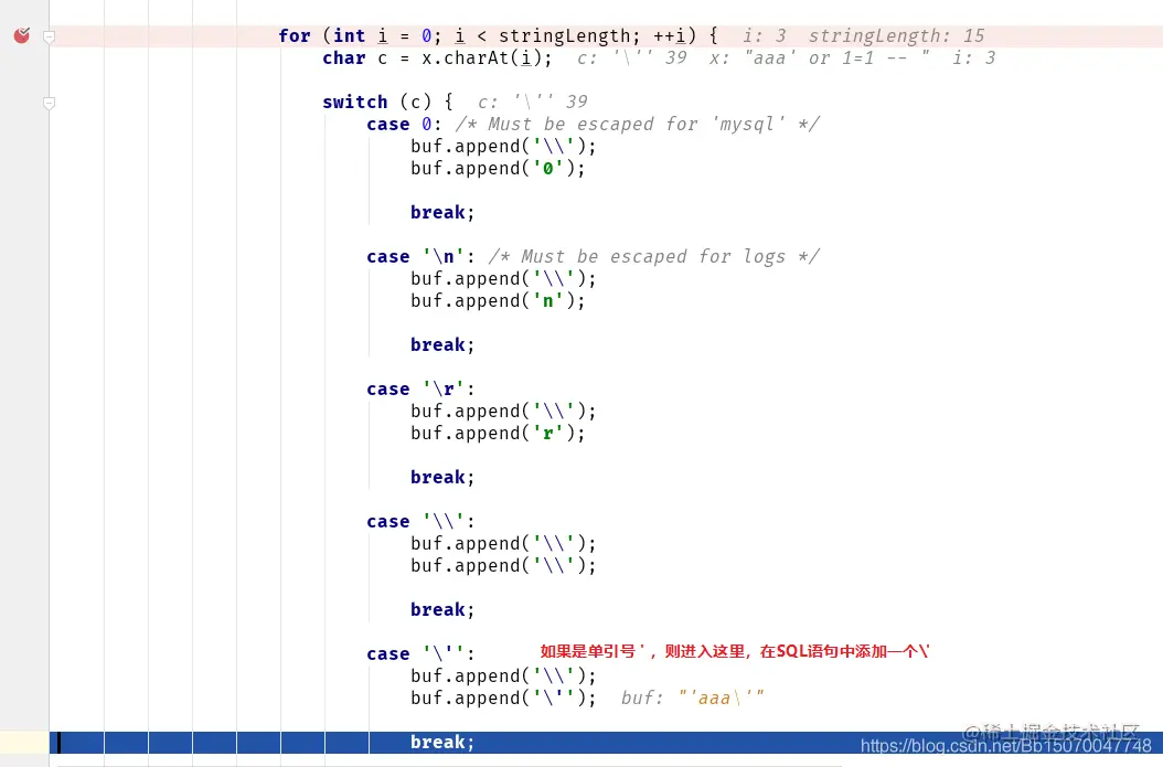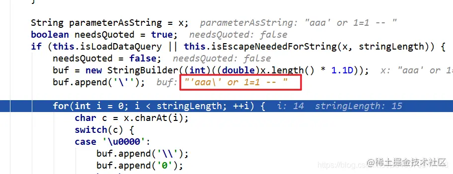 MyBatis 的#{}之所以能够预防 SQL 注入是因为底层使用了 PreparedStatement 类的 setString() 方法来设置参数,此方法会获取传递进来的参数的每个字符,然后进行循环对比,如果发现有敏感字符(如:单引号、双引号等),则会在前面加上一个’/‘代表转义此符号,让其变为一个普通的字符串,不参与 SQL 语句的生成,达到防止 SQL 注入的效果。