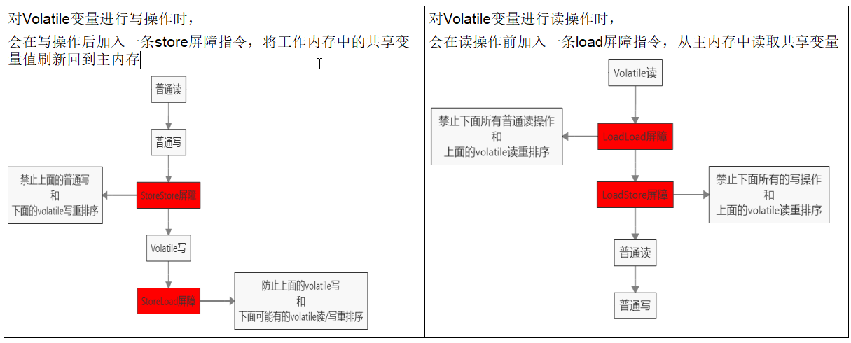 左边:写操作场景:先 LoadStore 指令,后 LoadLoad 指令。