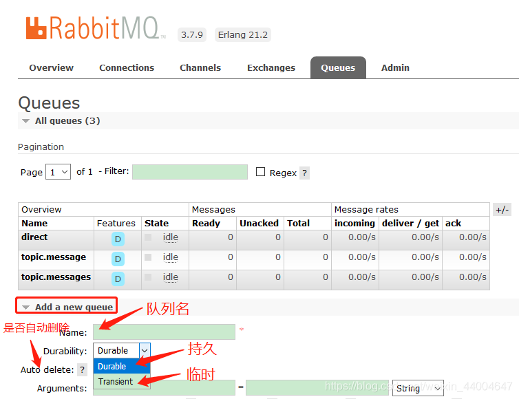 (2)RabbitMQ 管理界面手动添加队列