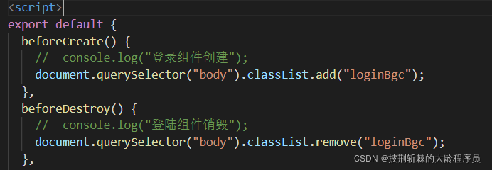 先自定义一个背景图样式的 class,然后在这个页面创建的时候给 body 加上这个背景样式,在页面销毁的时候将其移出就可以了,具体代码如下: