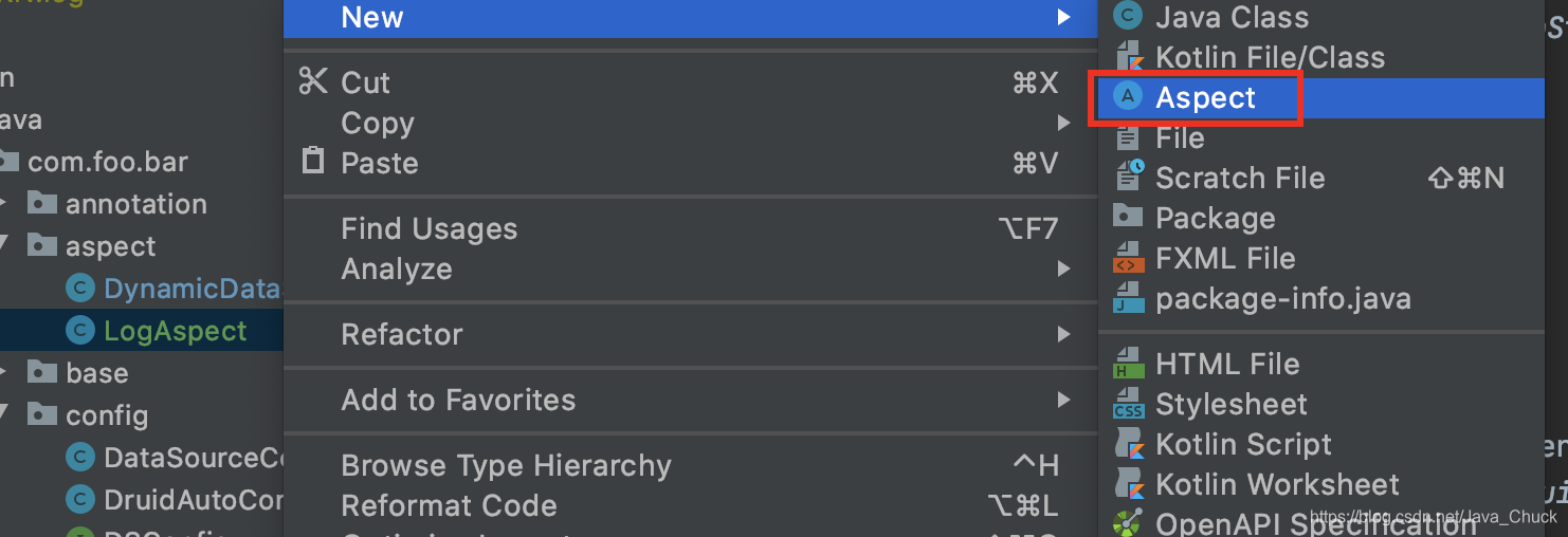 重新创建一个 Java Class 类型的文件,把原来 AOP 的代码拷过去就可以了。