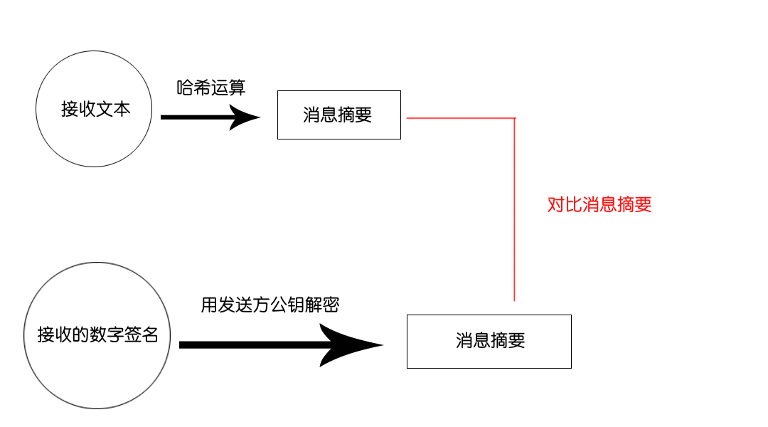 那么接收方如何验证消息就是发送方发生的呢?发送方将文本数据和数字签名一起发生给接收方,接收方收到文本数据和数字签名,同时接收方已知发送方的公钥,所以可以这样验证:
