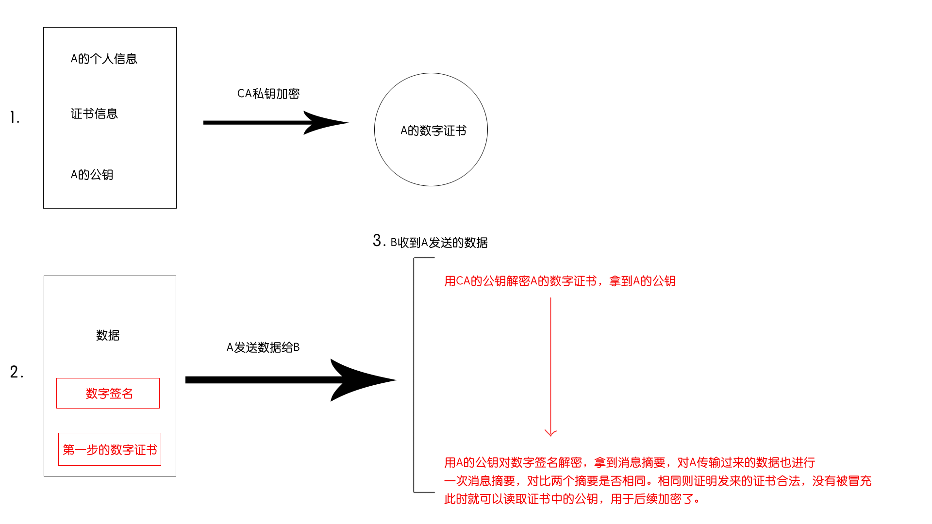 前提是接收方如何安全地拿到发送方的公钥呢?接收者对手中的公钥的真实性并无法做出判断,例如 A 给 B 通信,A 生成了一个公密钥对,A 拥有密钥,B 拥有公钥,A 使用私钥加密,B 使用 A 的公钥解密。现在 C 自己来生成一个公私钥对,并且使用生成的公钥将 B 手上持有的 A 的公钥替换掉,然后 C 使用生成的私钥就可以给 B 发消息,此时 B 还以为跟 A 在通信,其实他在跟 C 通信。