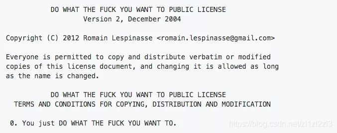 我们知道市面上有许多开源许可证,大概有上百种。目前比较常用的有 GPL、BSD、MIT、Mozilla、Apache 和 LGPL 等,但是 GitHub 上有人开源了一个 LICENSE,这个协议可谓是非常开放:你 XX 爱干啥就干啥。