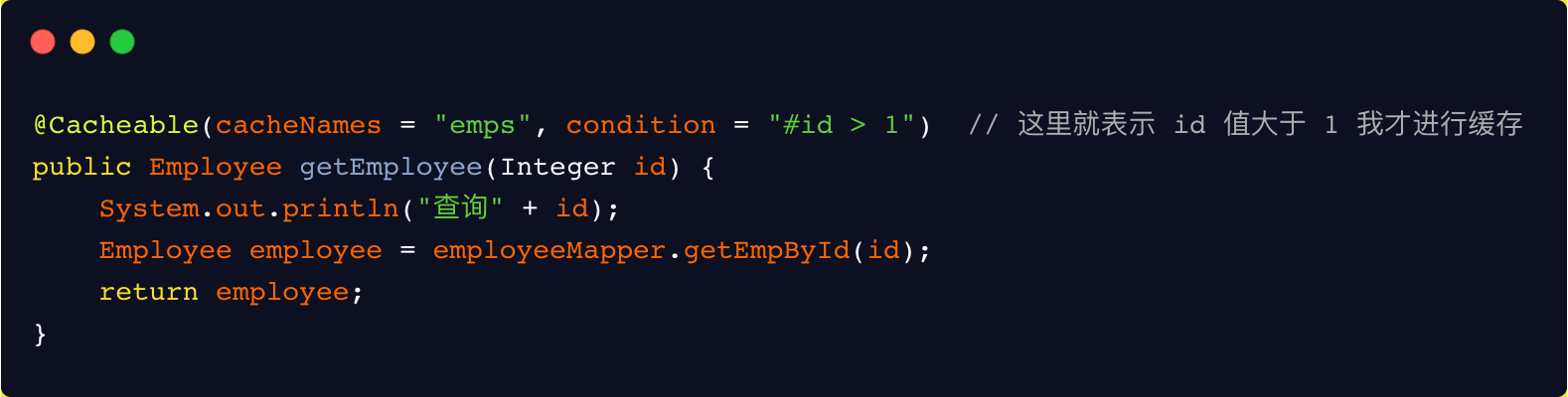 符合条件的情况下才缓存。方法返回的数据要不要缓存,可以做一个动态判断。