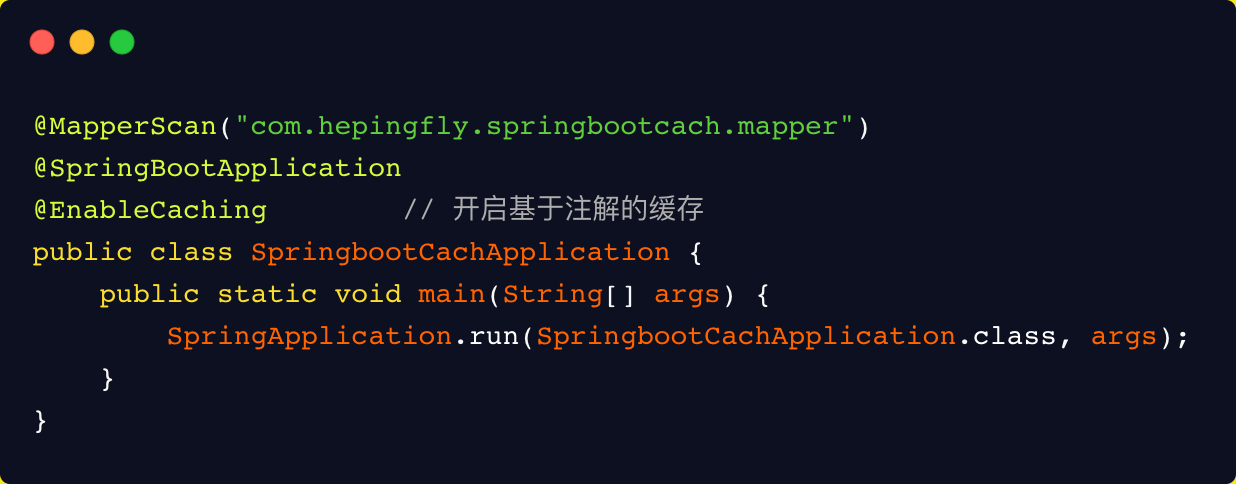 ① 第一步:开启基于注解的缓存,使用 @EnableCaching 标注在 springboot 主启动类上