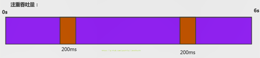 - 吞吐量优先,意味着在单位时间内,STW的时间最短:0.2+0.2=0.4