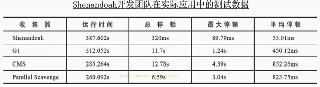 - Shenandoah GC的弱项:高运行负担下的吞吐量下降。