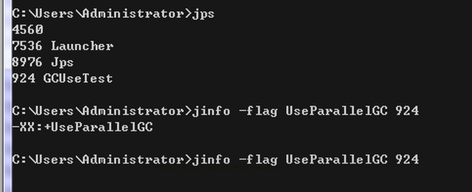 - 使用命令行指令:jinfo -flag 相关垃圾回收器参数 进程ID