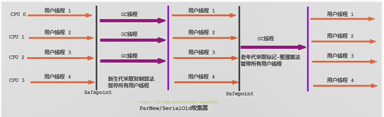 - 1999年随JDK1.3.1一起来的是串行方式的Serial GC,它是第一款GC。ParNew垃圾收集器是Serial收集器的多线程版本
