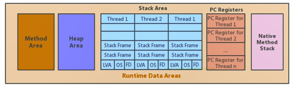 - JVM中的程序计数寄存器(Program Counter Register)中,Register的命名源于CPU的寄存器,寄存器存储指令相关的现场信息。CPU只有把数据装载到寄存器才能够运行。