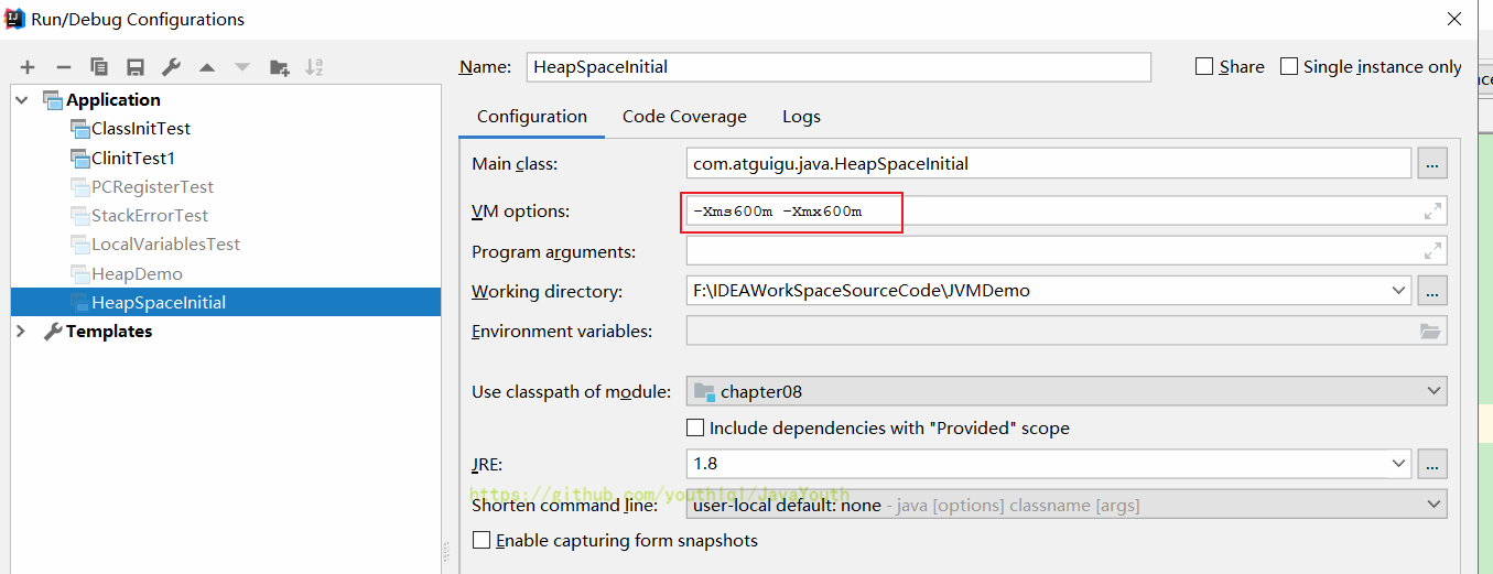* 开发中建议将初始堆内存和最大的堆内存设置成相同的值。