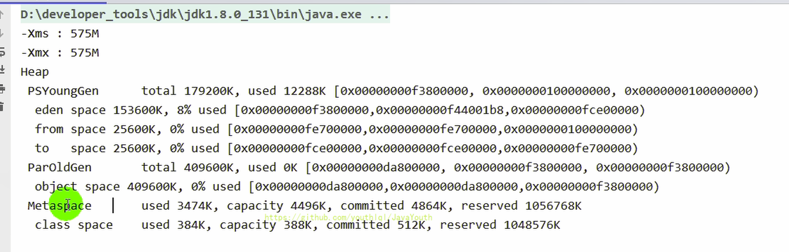 - 参数 -Xmx10m:指定了堆空间最大为10MB