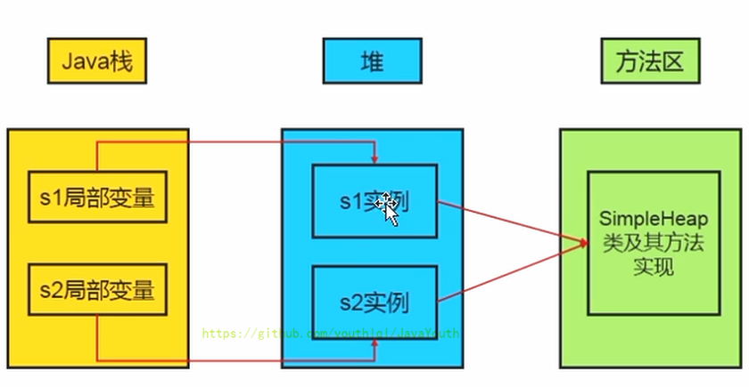 - 目前很多书籍还是基于JDK7以前的版本,JDK已经发生了很大变化,intern字符串的缓存和静态变量曾经都被分配在永久代上,而永久代已经被元数据区取代。但是intern字符串缓存和静态变量并不是被转移到元数据区,而是直接在堆上分配,所以这一点同样符合前面一点的结论:对象实例都是分配在堆上。