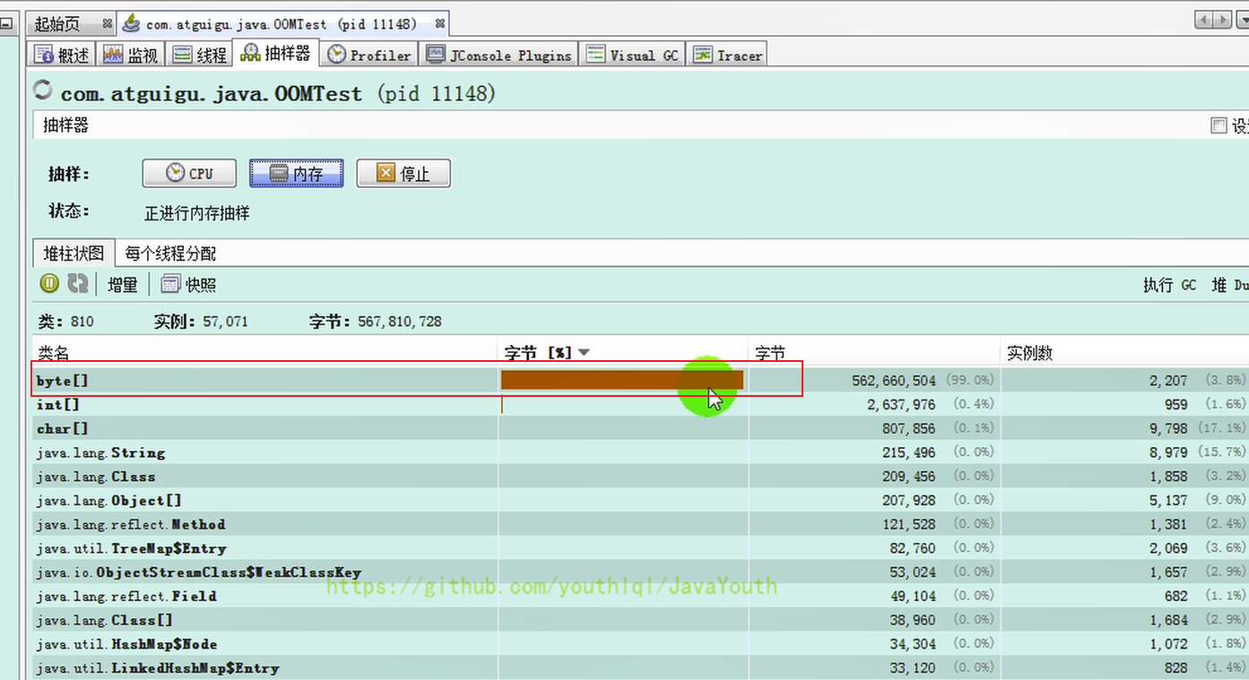 一旦堆区中的内存大小超过“-Xmx”所指定的最大内存时,将会抛出OutofMemoryError异常。