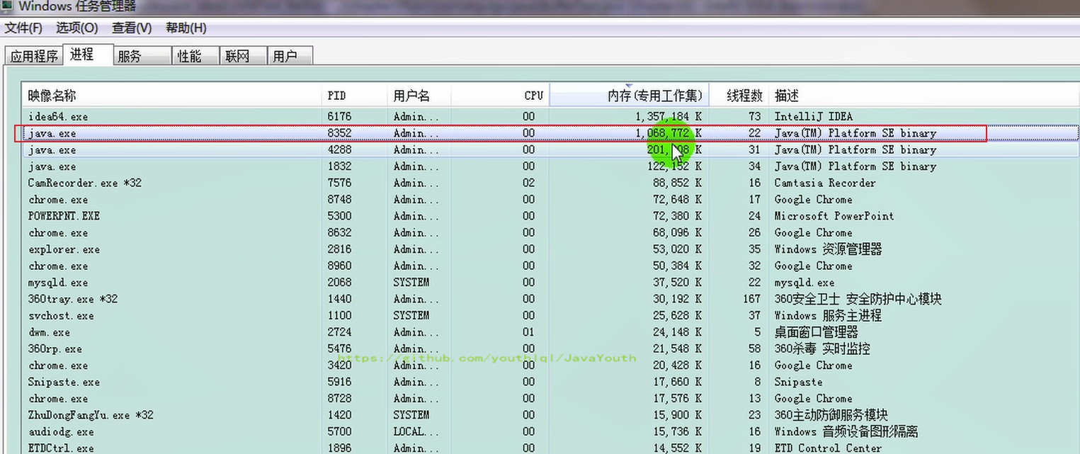 - 内存泄漏就是有大量的引用指向某些对象,但是这些对象以后不会使用了,但是因为它们还和GC ROOT有关联,所以导致以后这些对象也不会被回收,这就是内存泄漏的问题