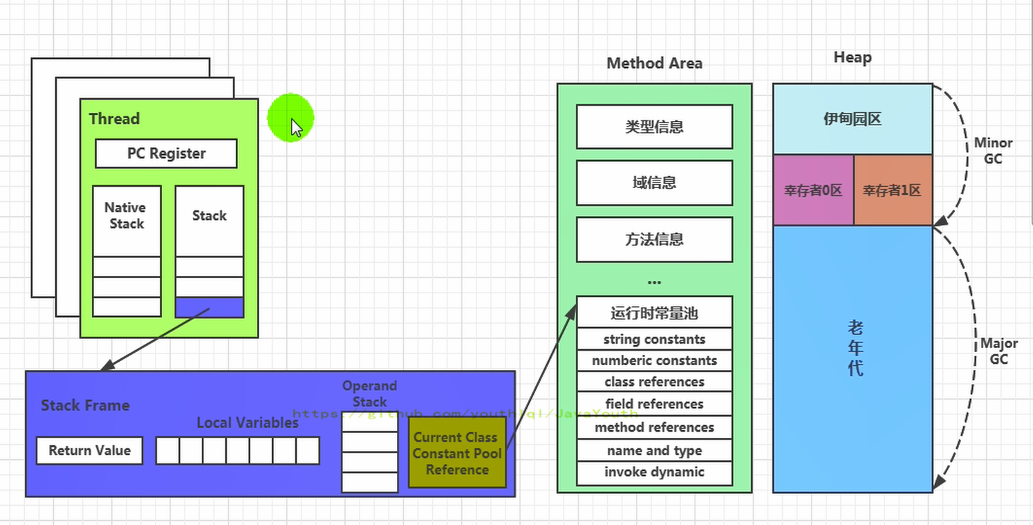 - 一面:Jvm内存模型以及分区,需要详细到每个区放什么。