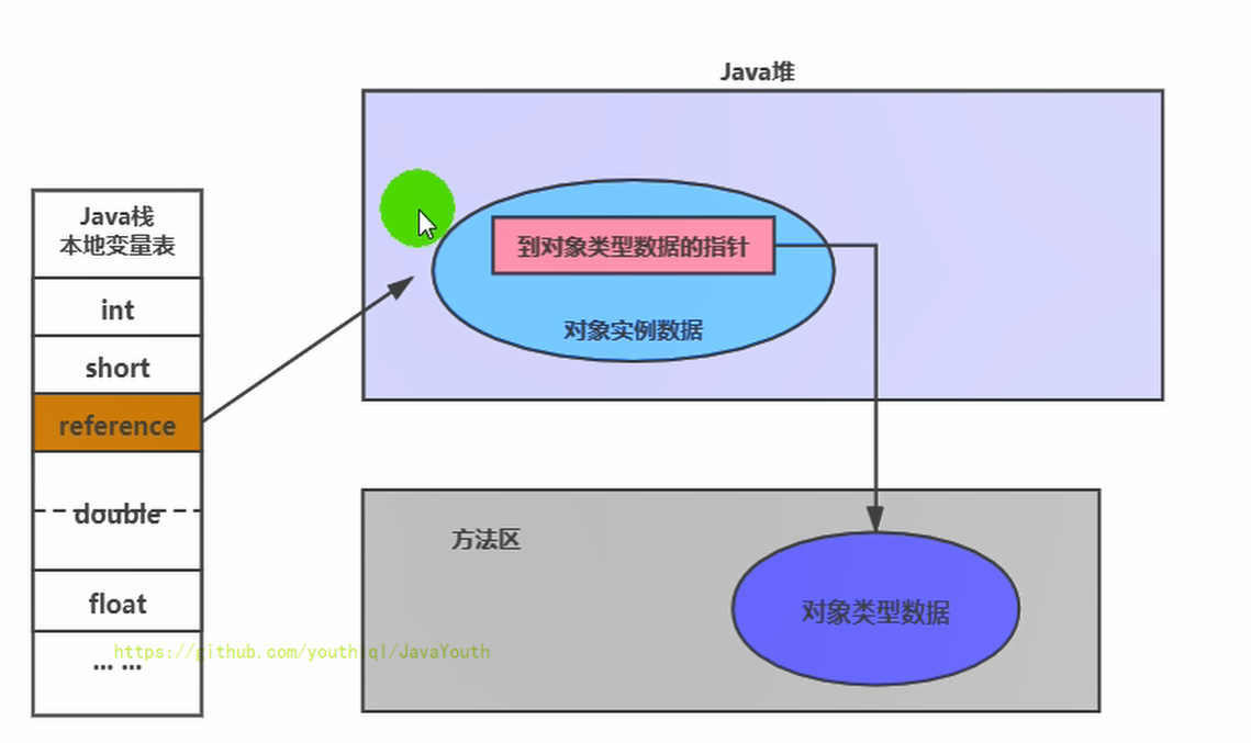 - 优点:直接指针是局部变量表中的引用,直接指向堆中的实例,在对象实例中有类型指针,指向的是方法区中的对象类型数据