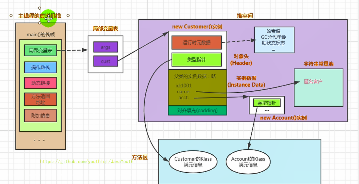 将对象的所属类(即类的元数据信息)、对象的HashCode和对象的GC信息、锁信息等数据存储在对象的对象头中。这个过程的具体设置方式取决于JVM实现。