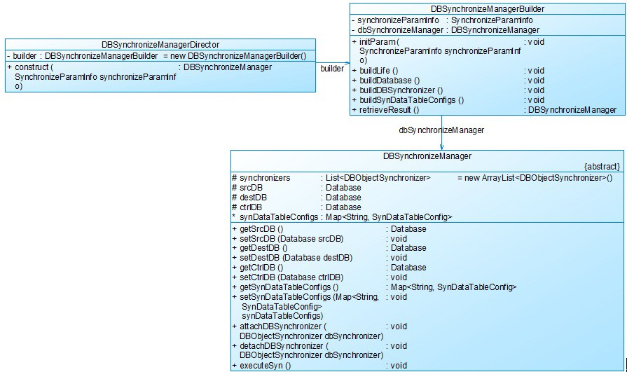 在图3中省略了抽象建造者,DBSynchronizeManagerDirector充当指挥者类,