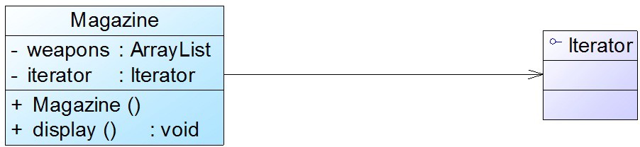 public class Magazine { private ArrayList weapons; private Iterator iterator;