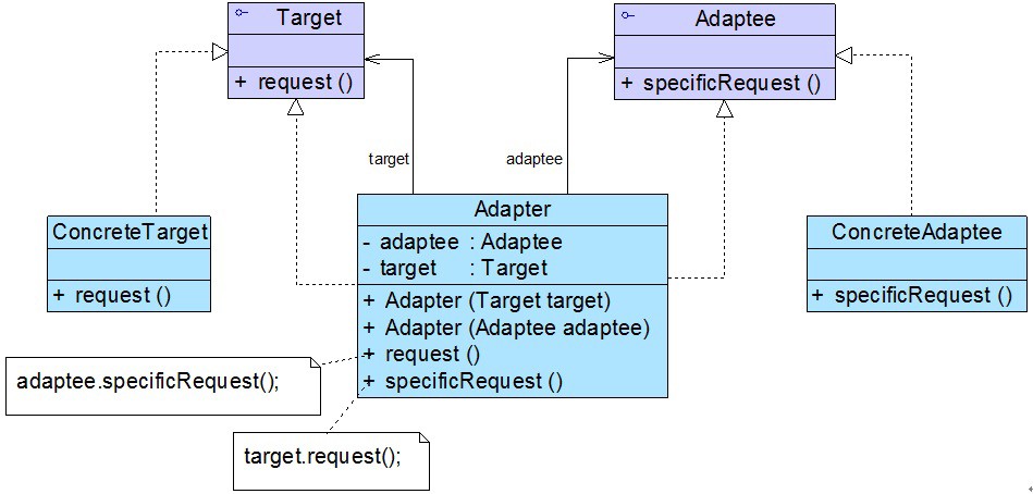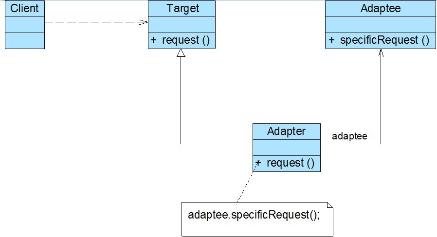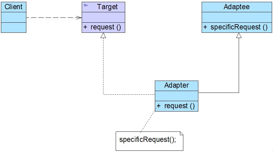 在软件开发中,有时也存在类似这种不兼容的情况,我们也可以像引入一个电源适配器一样引入一个称之为适配器的角色来协调这些存在不兼容的结构,这种设计方案即为适配器模式。